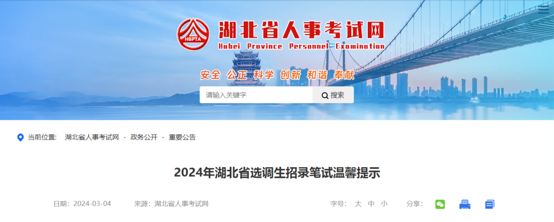《2024年湖北省选调生招录笔试温馨提示》