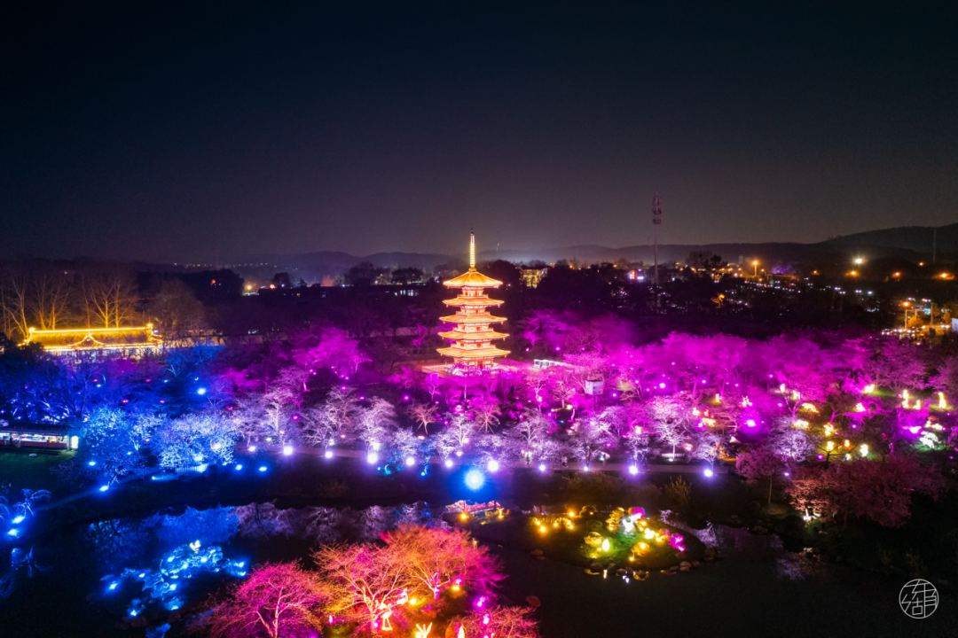 为了丰富大家的赏樱体验,开园后,东湖樱花园还将于同日开放日间与夜间全时段赏樱。白天游园赏樱观戏剧,夜晚9000多组灯组勾画出古建筑群的灵动轮廓,将赏樱氛围烘托到极致。闲庭信步,夜游赏樱,一起共情古人秉烛夜游的喜悦。