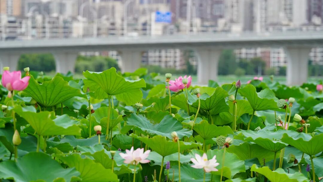 荷花、石榴花、梅花、月季、绣球花、紫藤花等开花植物,扮靓湖岸线;