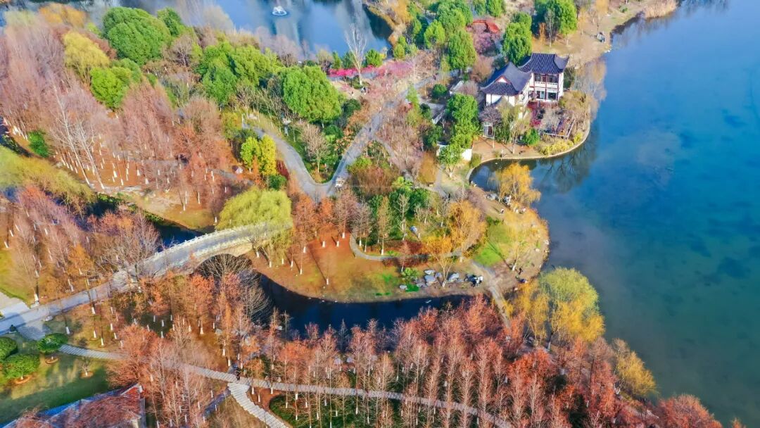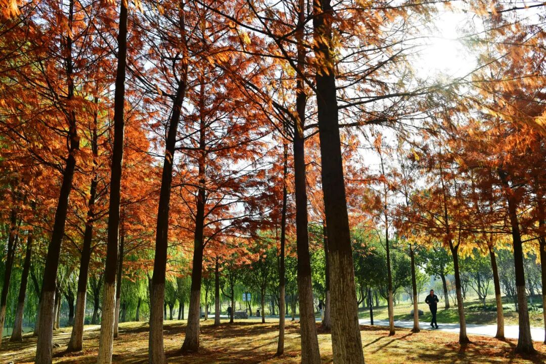 红枫、水杉为秋冬增添暖色;