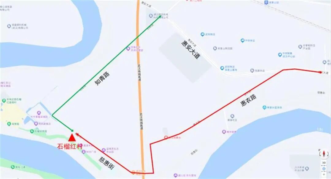 需前往石榴红村的车辆,可按惠安大道——惠农路——慈惠街——石榴红村路线通行。