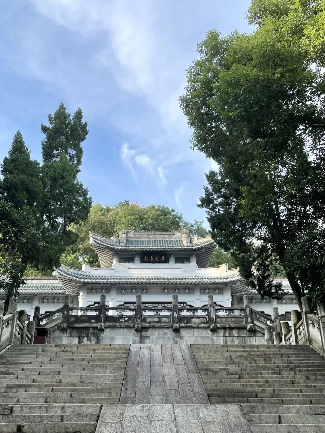 「辛亥革命纪念碑亭」、「武昌首义纪念群雕」掩映在蛇山郁郁葱葱的蓝天白云下,山顶处的蛇山炮台遗址静静地俯视着武昌城,缅怀往事,纪念历史。