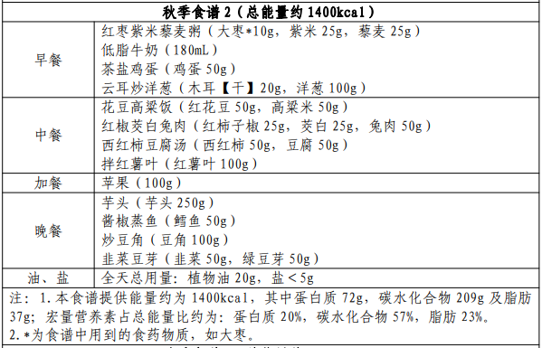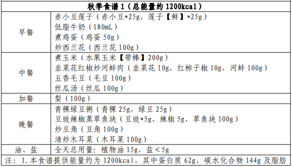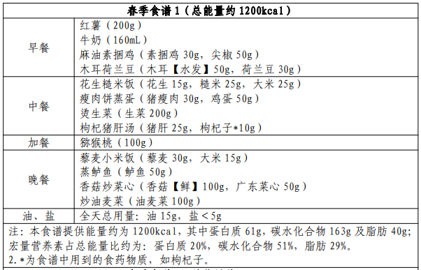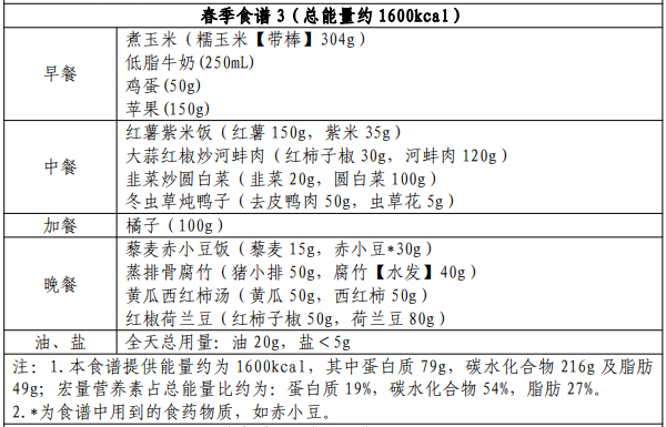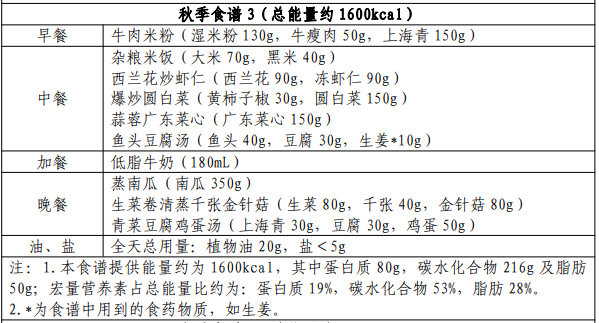 值得注意的是这份食谱细化到了全国不同地区的食谱示例并贴心地备注上了食谱的“总能量”
