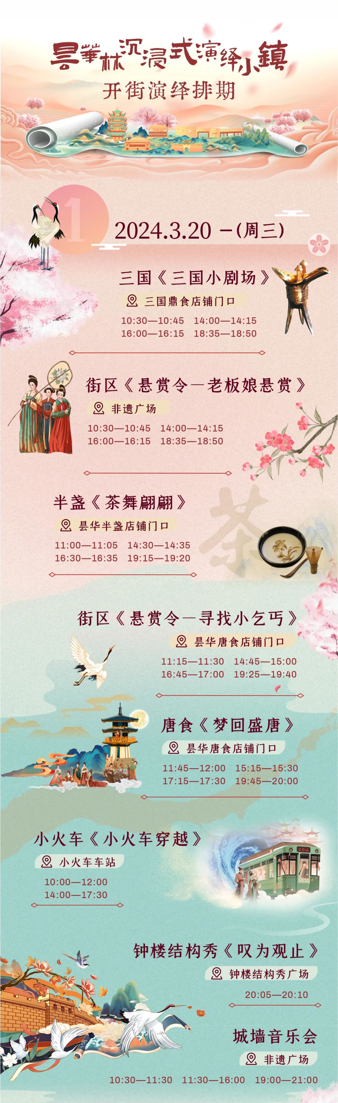 在独具意蕴的东方盛世,来一场梦幻般的穿越之旅。游客可以在昙华林沉浸式演绎小镇中,参与各种演绎活动、互动体验,在享受娱乐的同时,感知千古文化魅力。