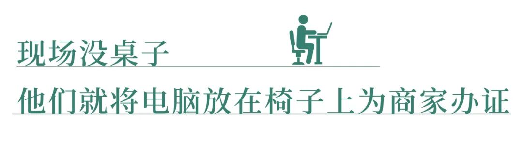 过完周末,11月20日,三人就背着电脑来到商场。当时,周边的路还未修好,得绕路进,里面装修还未完工,灰还较大。办公的位置在二楼一间简易的办公室,后因装修还换过两次地方。有时候没桌子,他们只能将电脑放在椅子上办理业务。“虽然环境特殊,但为商户做好服务是我们的工作。”贾绪伟说。
