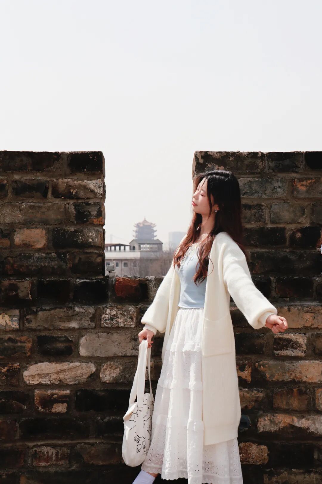 ◎城墙旁的旋转楼梯铺好了花路,等你拍