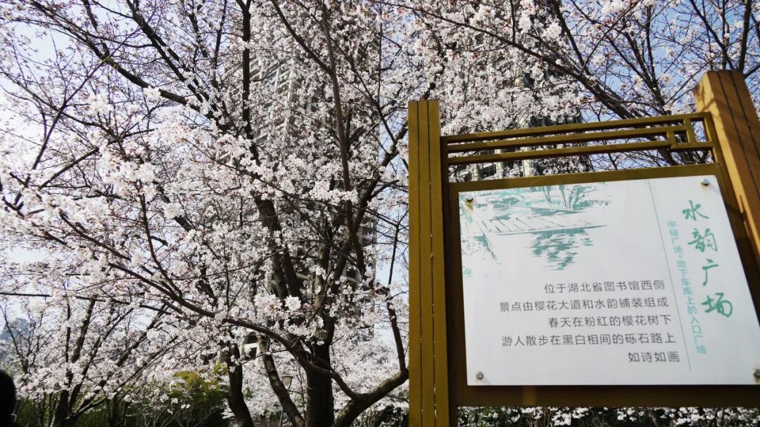 在沙湖公园地下停车场上的水韵广场,樱花林正盛放,千万别错过。