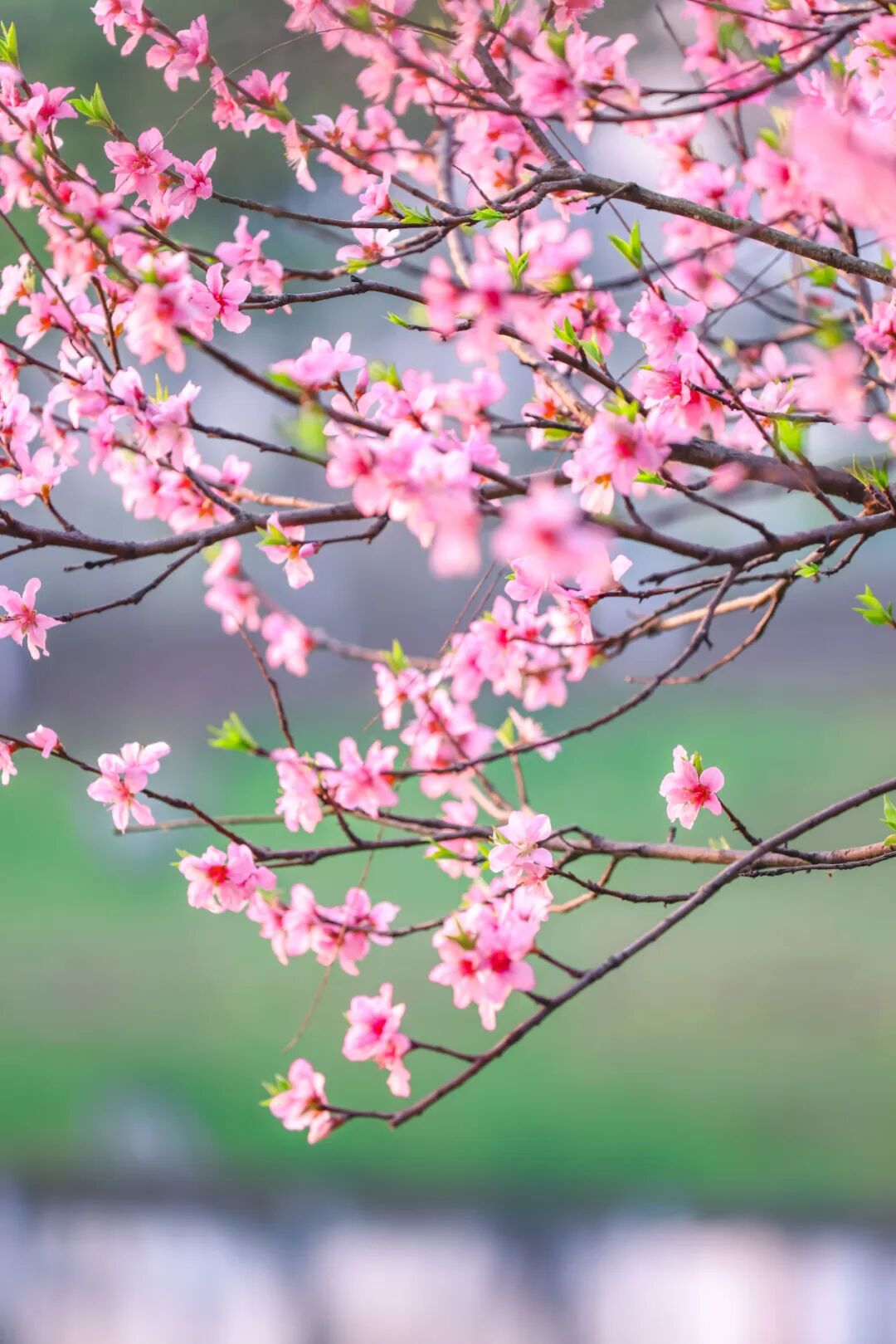 东风阵阵来,桃花片片开。粉嫩的花朵缀满枝丫,微风吹来,喷出醉人的芬芳。