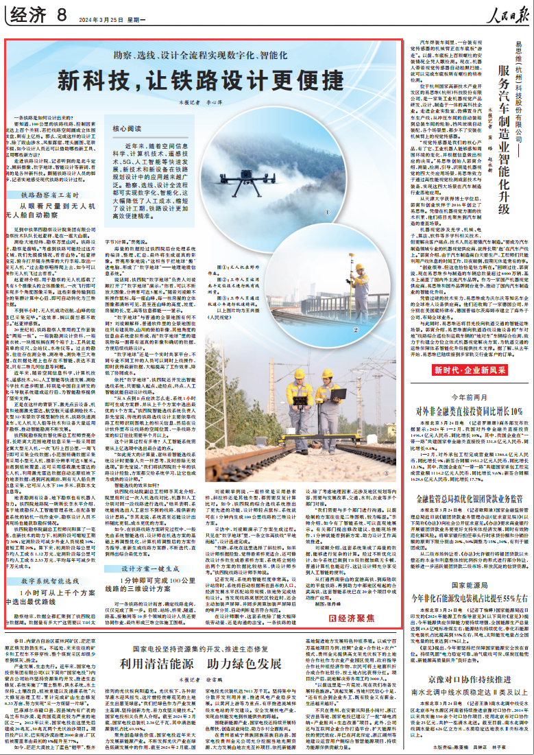 近年来,随着空间信息科学、计算机技术、遥感技术、5G、人工智能等快速发展,新技术和新设备在铁路规划设计中的应用越来越广泛。勘察、选线、设计全流程都可实现数字化、智能化,这大幅降低了人工成本,缩短了设计工期,铁路设计更加高效便捷精准。