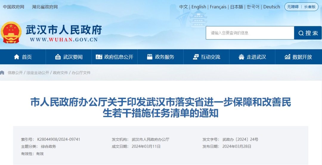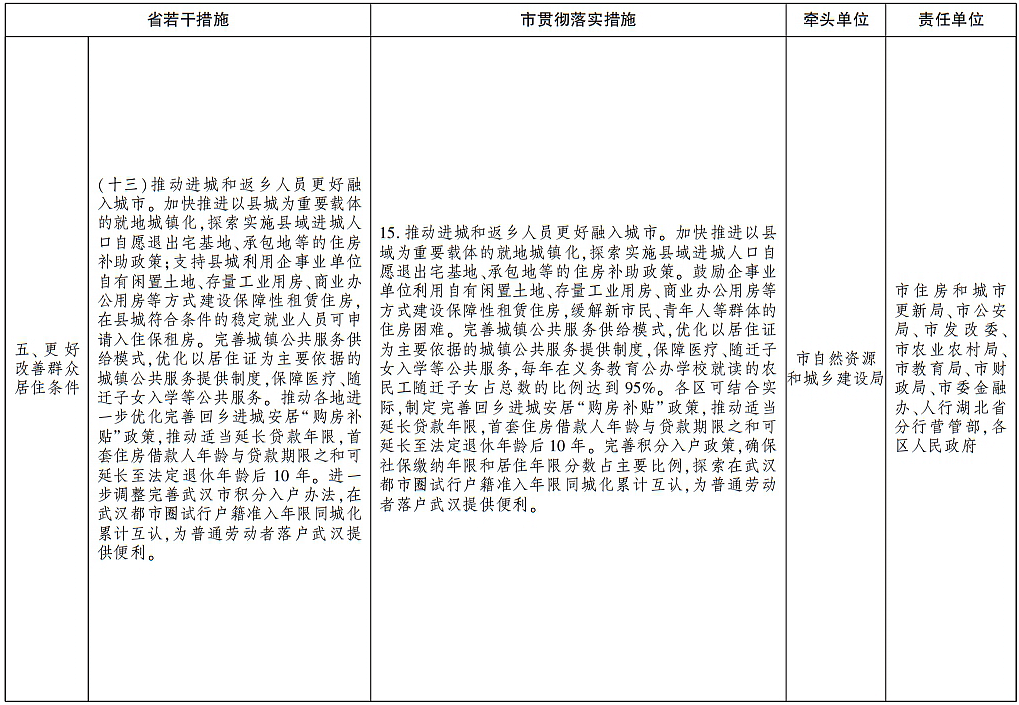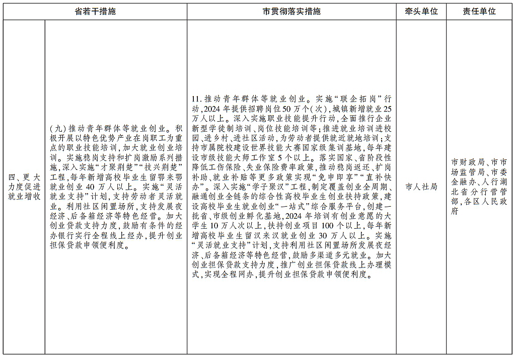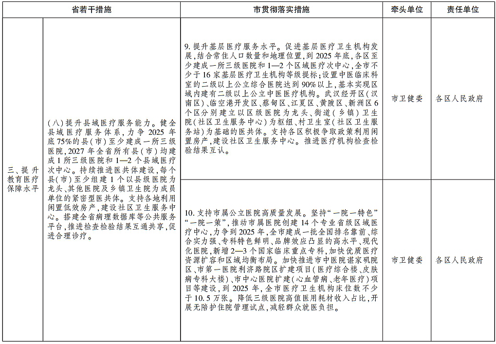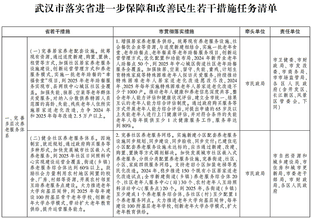武汉市落实省进一步保障和改善民生若干措施任务清单的通知》