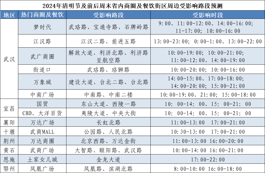 武汉、鄂州、恩施、孝感、黄冈等地城市道路拥堵风险高。