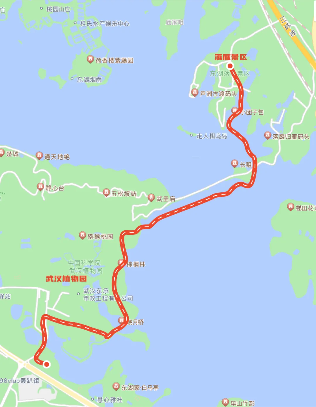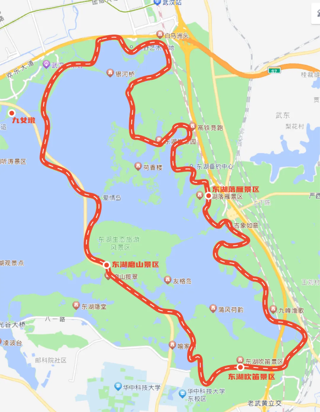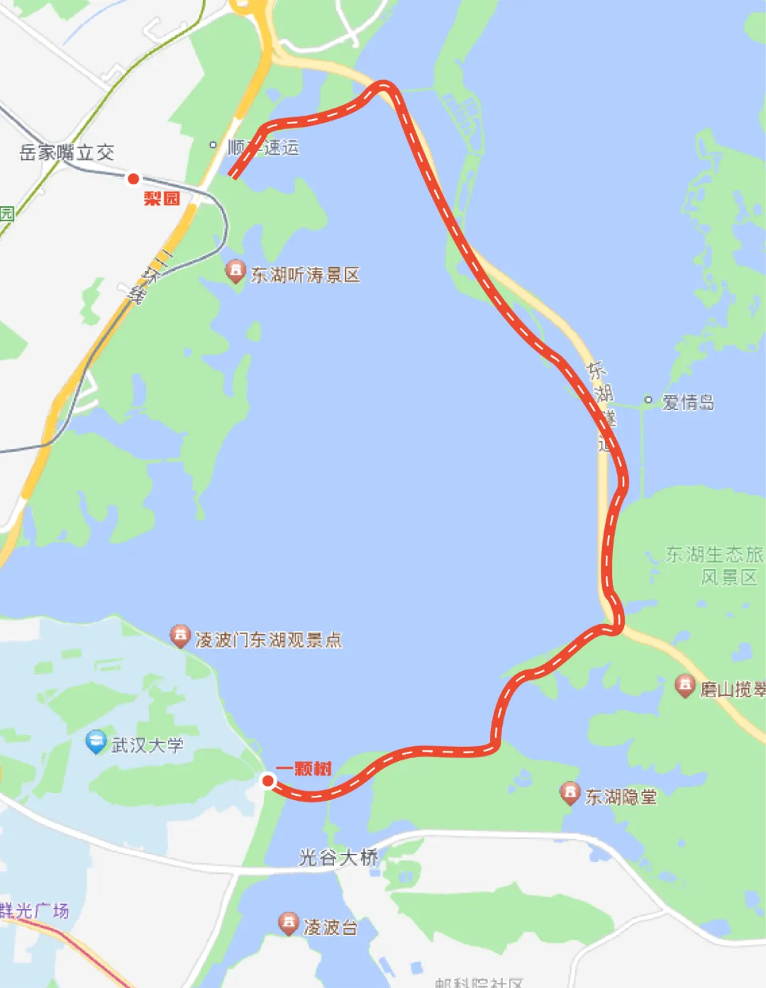 ????导航:东湖绿道总长101.98公里,绿道入口在【梨园】附近