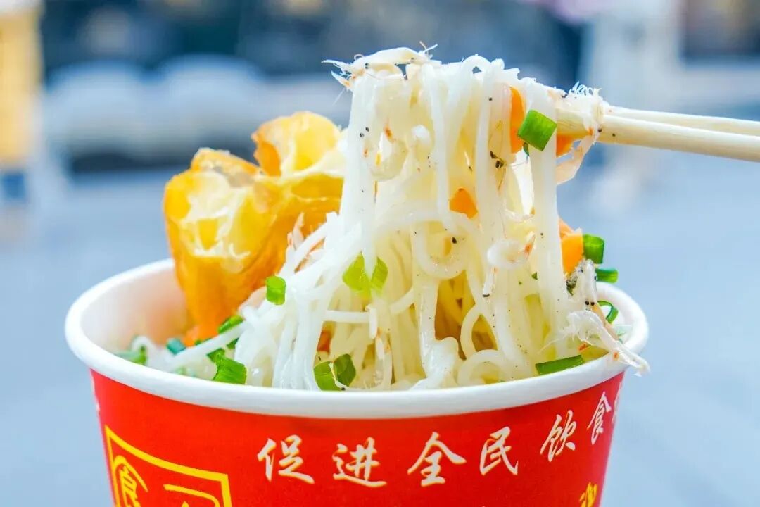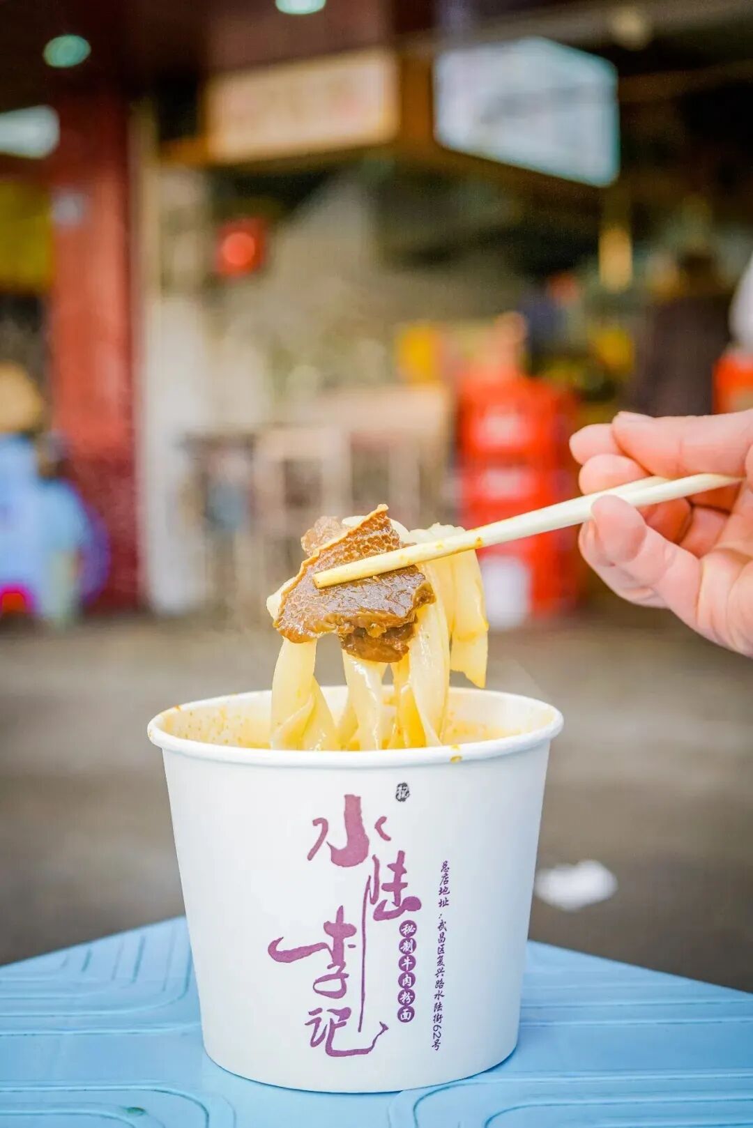 李记秘制牛肉粉门前,食客小心翼翼地从老板手里接过满得快要溢出来的牛肉粉,快准狠地找到板凳落座,喝上一口牛肉汤再配上炸得金黄酥脆的面窝,熨帖极了。