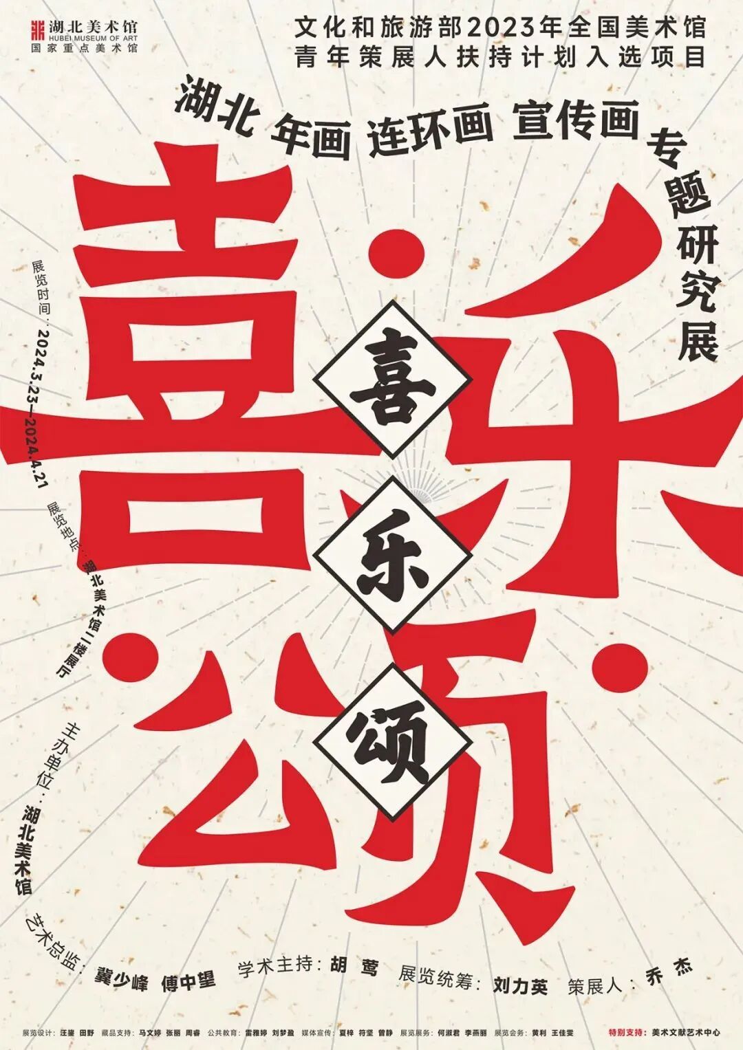 「喜·乐·颂——湖北年画连环画宣传画专题研究展」以湖北美术馆馆藏作品与文献为研究基础,展出20世纪50年代至80年代末出版或发表的湖北年画、连环画、宣传画近50件,全面展现新中国传统节日的人文风情。