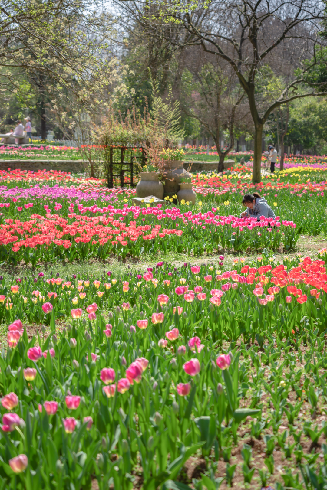 最近,武汉植物园内梨花胜雪、桃若云霞,60万余株郁金香如诗如画,与牡丹、海棠、晚樱等春花合力营造一片色彩缤纷的春日花园。草坪上、花圃内、密林间、湖岸边,各色花卉让人目不暇接,随手一拍超出片。