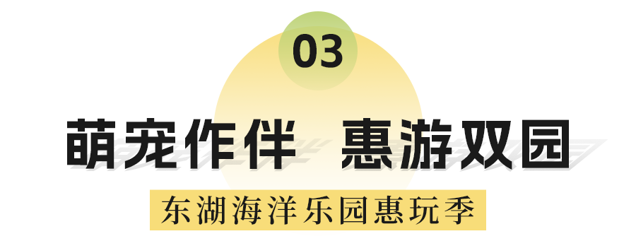 四月春花渐醒,枝芽泛绿,万物焕发生机,东湖海洋乐园里的小动物们也都活力满满,准备迎接游客们的到来。东湖海洋乐园特别推出双项目畅玩优惠活动:仅需148元就能乐游东湖海洋世界和东湖大马戏,可爱萌宠、精彩演艺,一次打卡,保证酣畅淋漓。