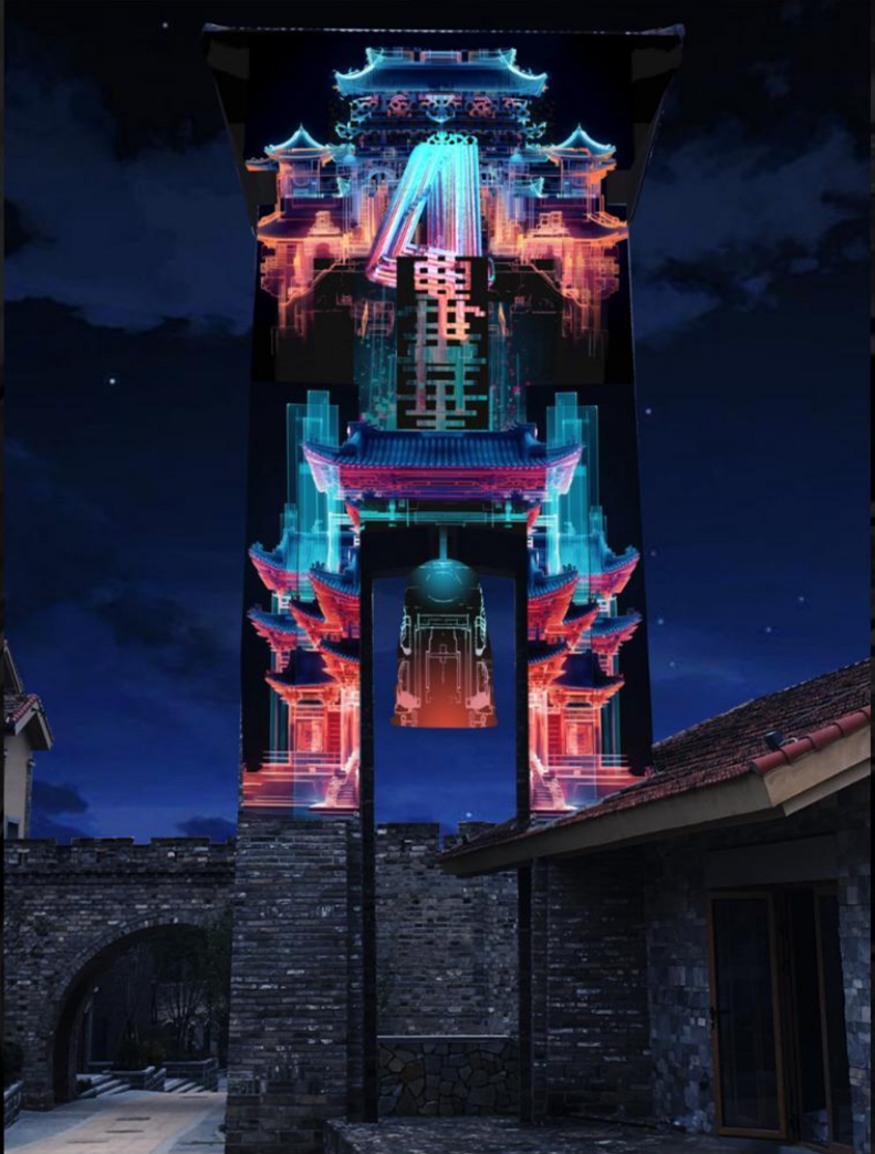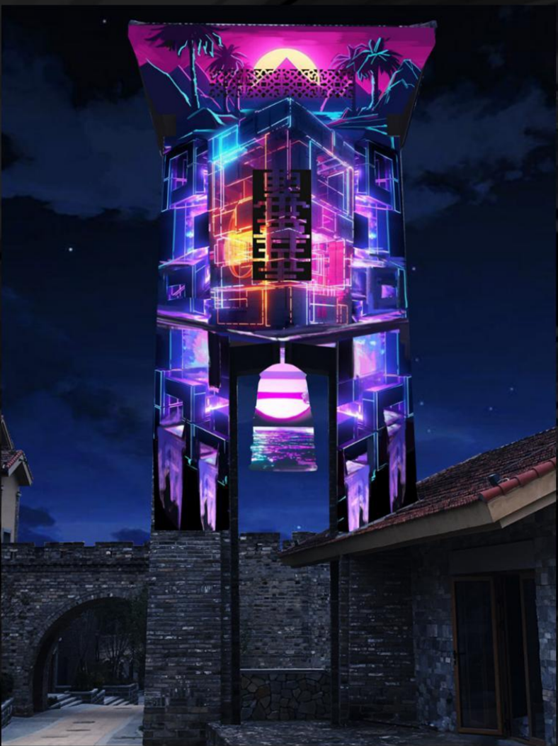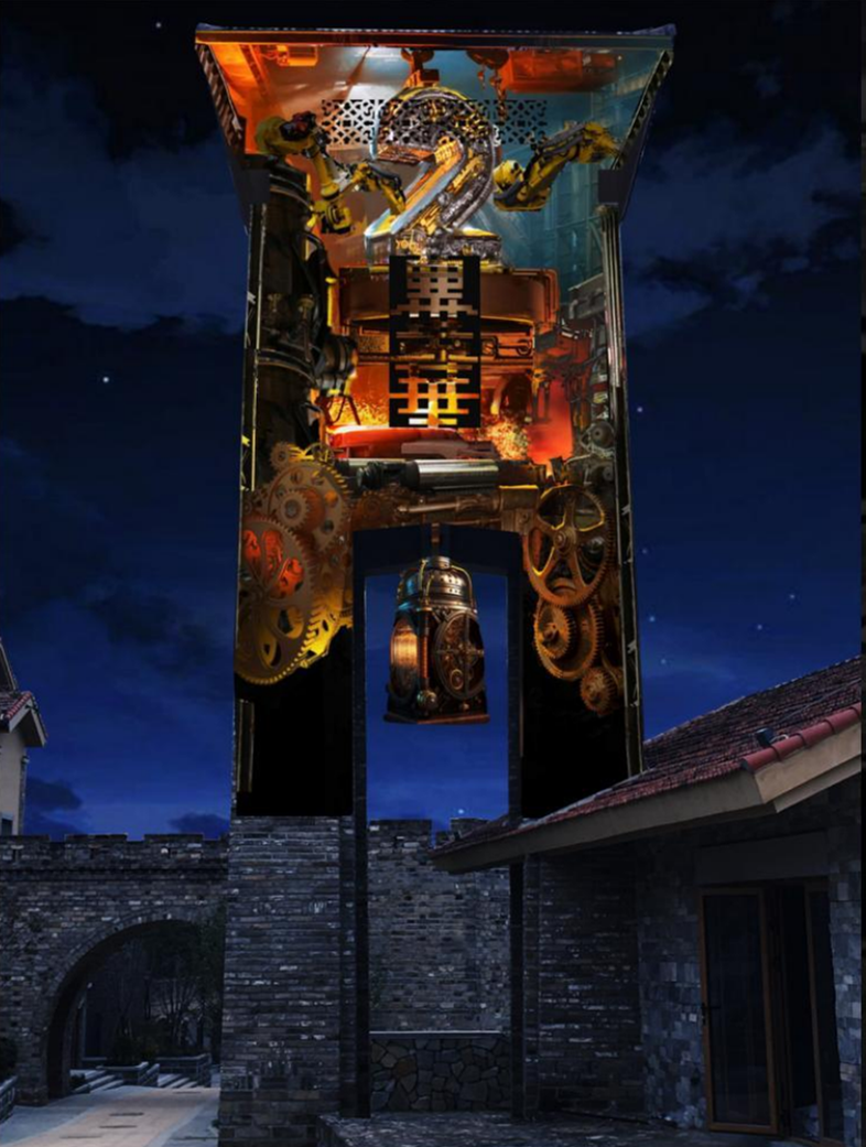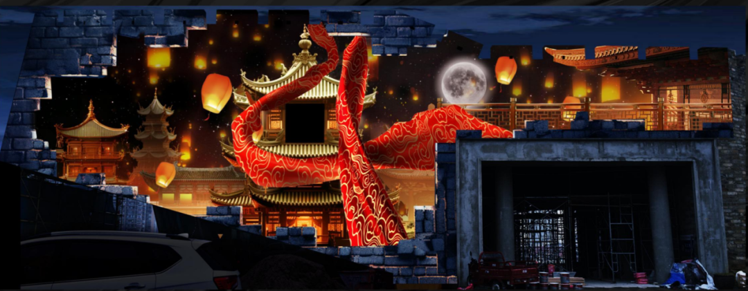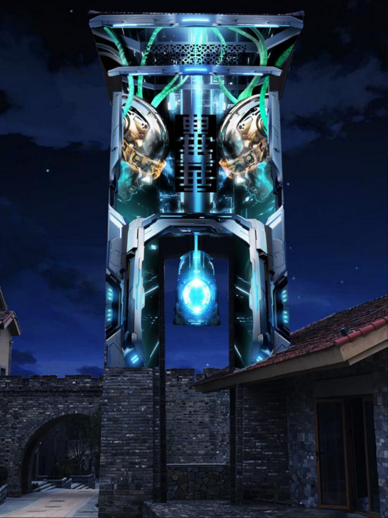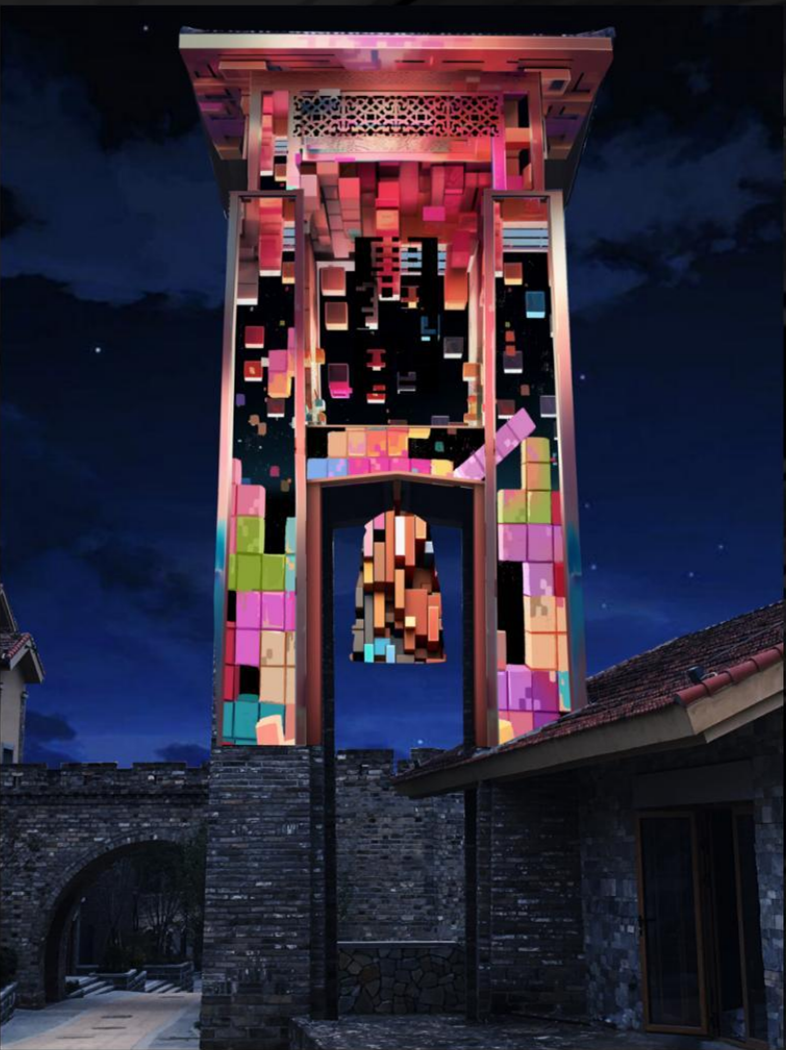 倒计时数字“4”线条空间结构搭建,时尚炫酷与古建结合。