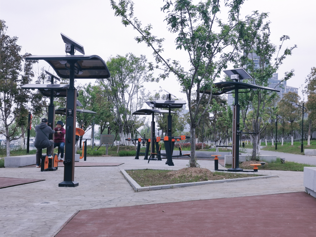 八铺街江滩紧邻白沙洲街人口密集社区,附近居民晨起、傍晚常到江滩内休闲锻炼,为了丰富市民游客的运动体验,2024年3月,江滩管理单位配合相关部门进行实地勘察,在江滩风帆广场区域打造全民健身活动区,引进26套健身器材和6副磁控棋桌以及安全使用提示牌,具体包括老年人健身器材,智能力量训练器材,磁控象棋桌,磁控跳棋桌等,品类丰富,满足全龄段锻炼需求。部分器材自带智能语音提示和太阳能照明,相比传统公共健身器材更加智能环保。健身器材一经投入安装使用就深受市民游客欢迎。