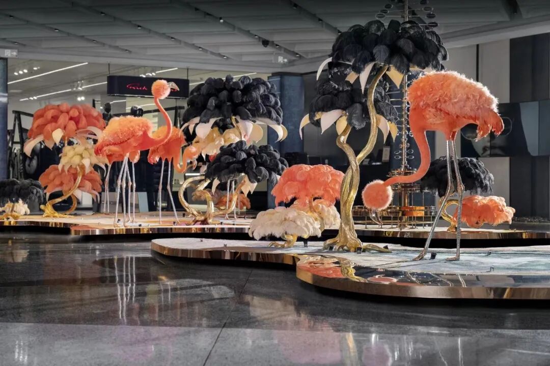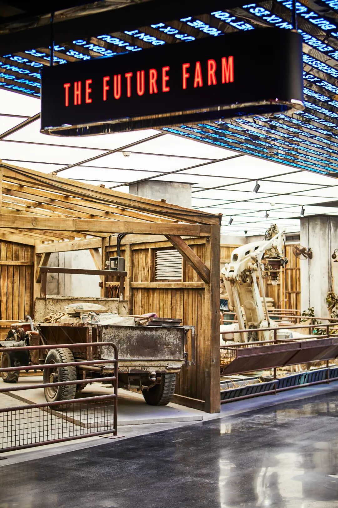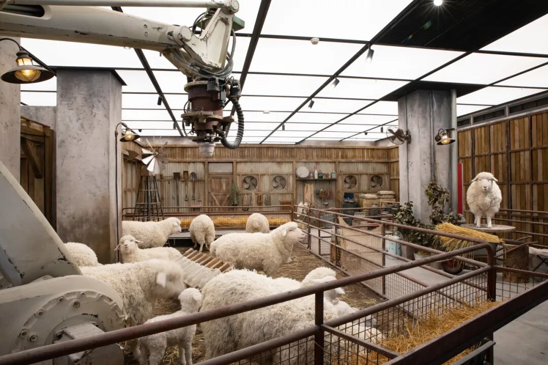 在羊群制造厂里,我甚至看到了一半机械一半肉身的羊和一串乱码(据说是火星文)。中庭墙面上印有来自火星的真实照片,沿路逛还能看到机械企鹅和机械火烈鸟。