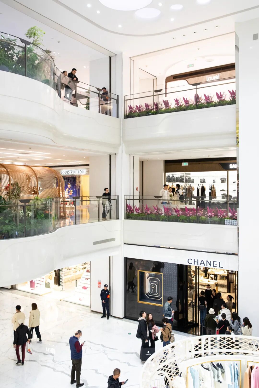 整个SKP都散发香味,每层楼的香氛根据楼层特点来设计,一楼是甜甜的花果调,二楼则是偏中性的木质香。偶尔你也能闻到原生的花香,商场随处可见绿植和鲜花,花艺师会根据季节和主题,进行新的设计和替换,像在打理自家后花园,一定要让来宾暗爽。