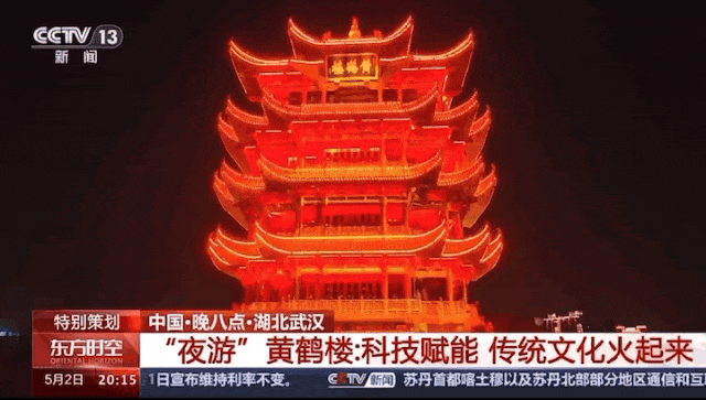 5月2日,《东方时空》推介夜上黄鹤楼。在光影的加持下,千古名楼更显浪漫唯美。