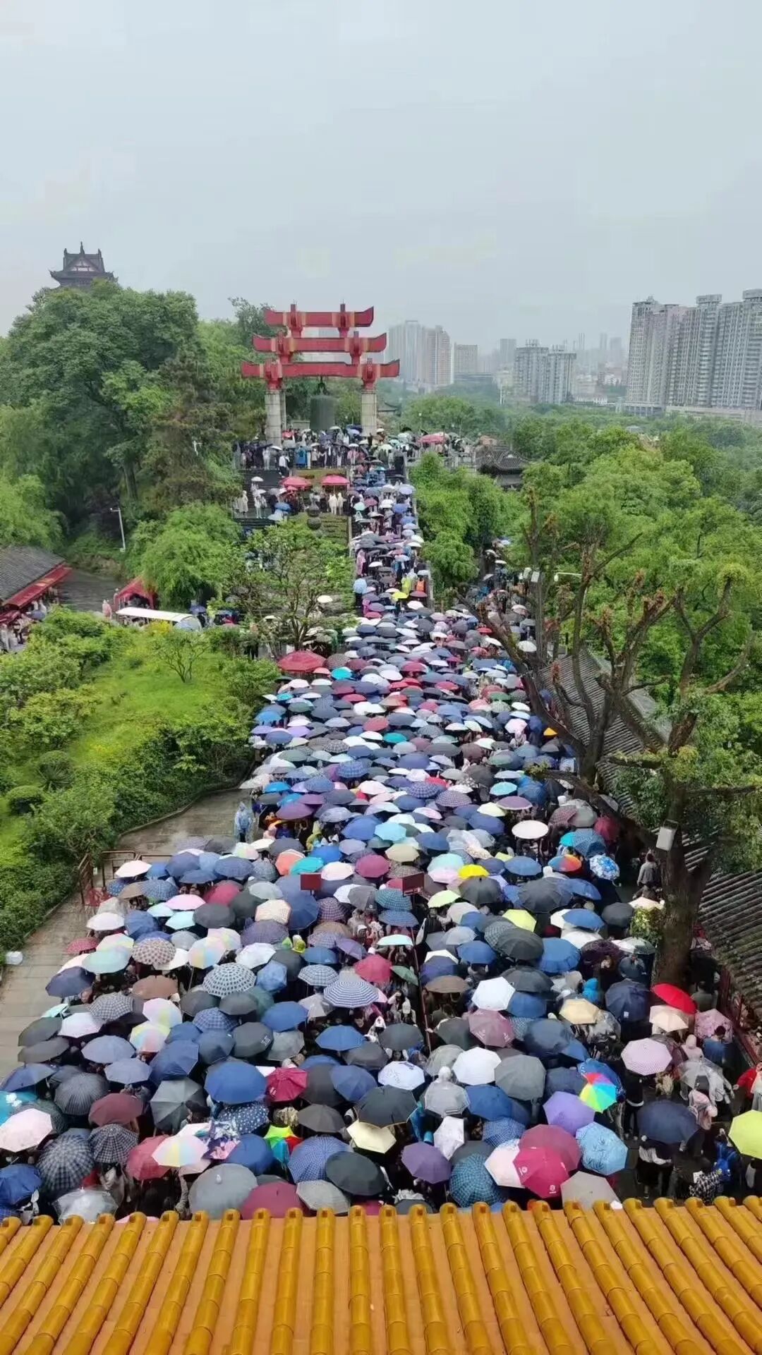 哪怕5月3日下雨,也没阻挡大家的热情,人多到“堵伞”。难怪有网友开玩笑,“不知道的还以为要攻城”。
