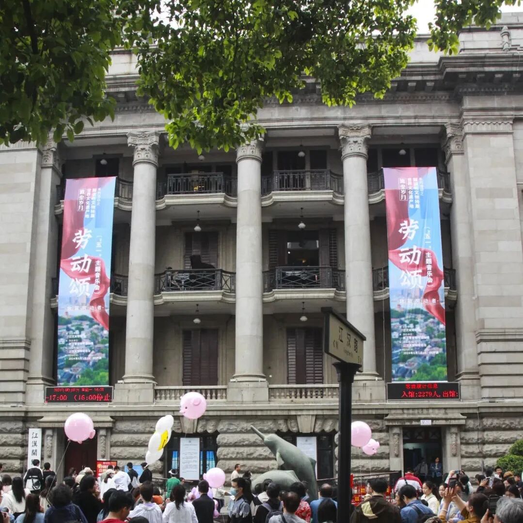 五一劳动节当天,百年江汉关上演了一场阳台音乐会。