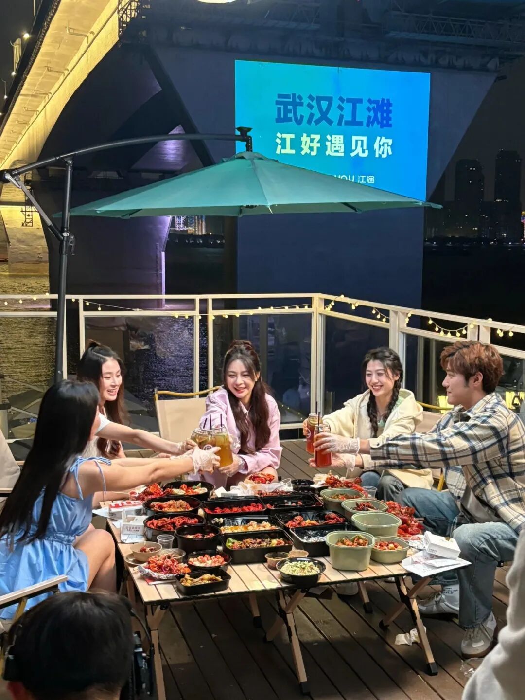 沈梦辰把靓靓蒸虾、巴厘龙虾、虾皇、肥肥虾庄、一棠龙虾的招牌全都打包,小龙虾配江景和灯光秀,想想都美。