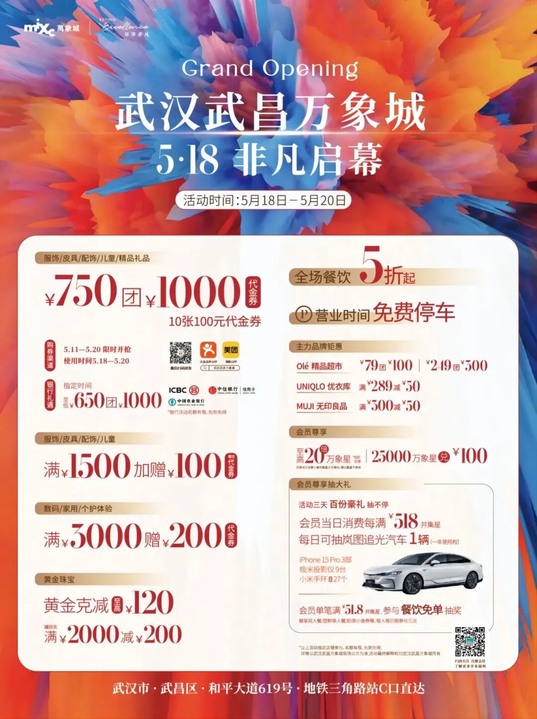 正如武汉武昌万象城一贯以来的高标准,满减、满赠、折扣等方面同样以尽心尽意的诚意为你送上第一份大礼。