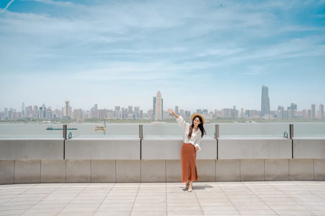 在武汉武昌万象城的露台上,看超一线江景,视野超绝。