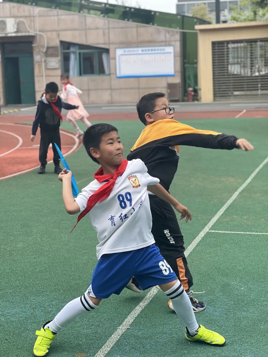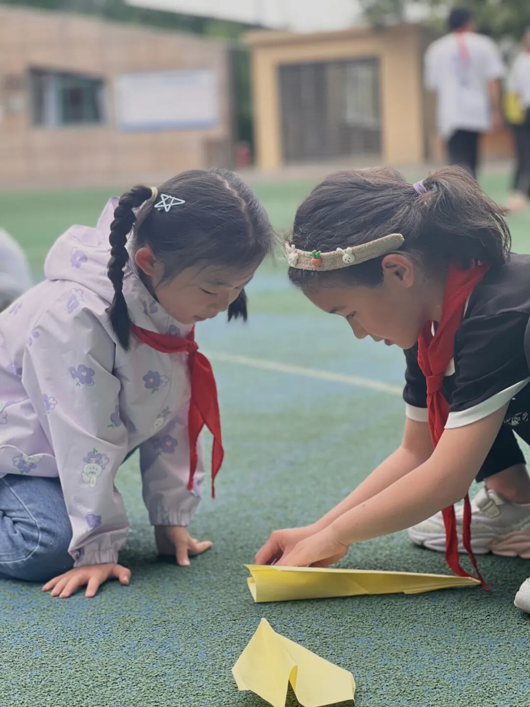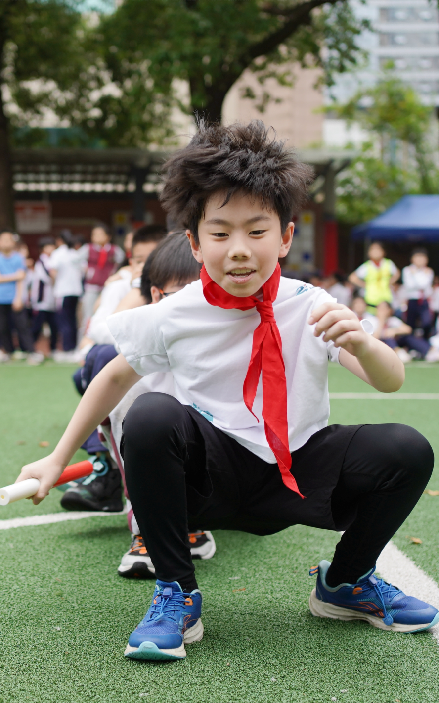 武昌区育红小学鼓励孩子们单人、双人跳短绳,以班级为单位跳长绳、跳皮筋。同伴之间玩纸飞机,开展老鹰抓小鸡、木头人等文明、安全的课间游戏。孩子们玩得开心,同伴间越发团结、亲密。