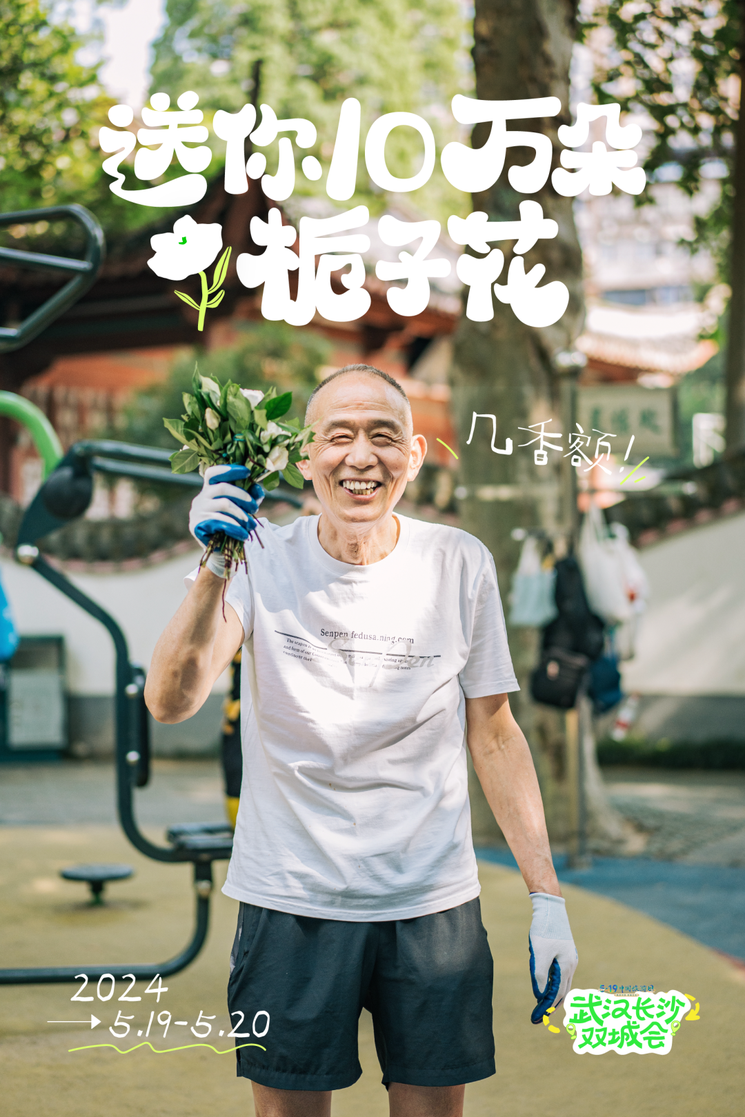5月19日-5月20日,持续2天,在江滩、步行街、里份等城市角落,40个点位,免费放送10万朵栀子花。