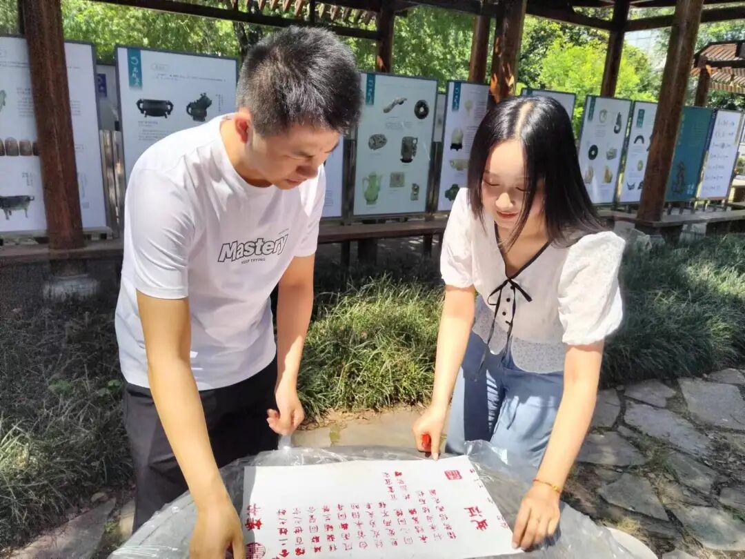 在契园婚契家契展馆内,新人们在跟文物和展品对话的过程中,亲身感触家契和婚姻证书所共同蕴含的楚人诚信精神内核。还通过拓印互动,生成属于自己独一无二的婚书,亲手触摸到婚俗文化的脉络。