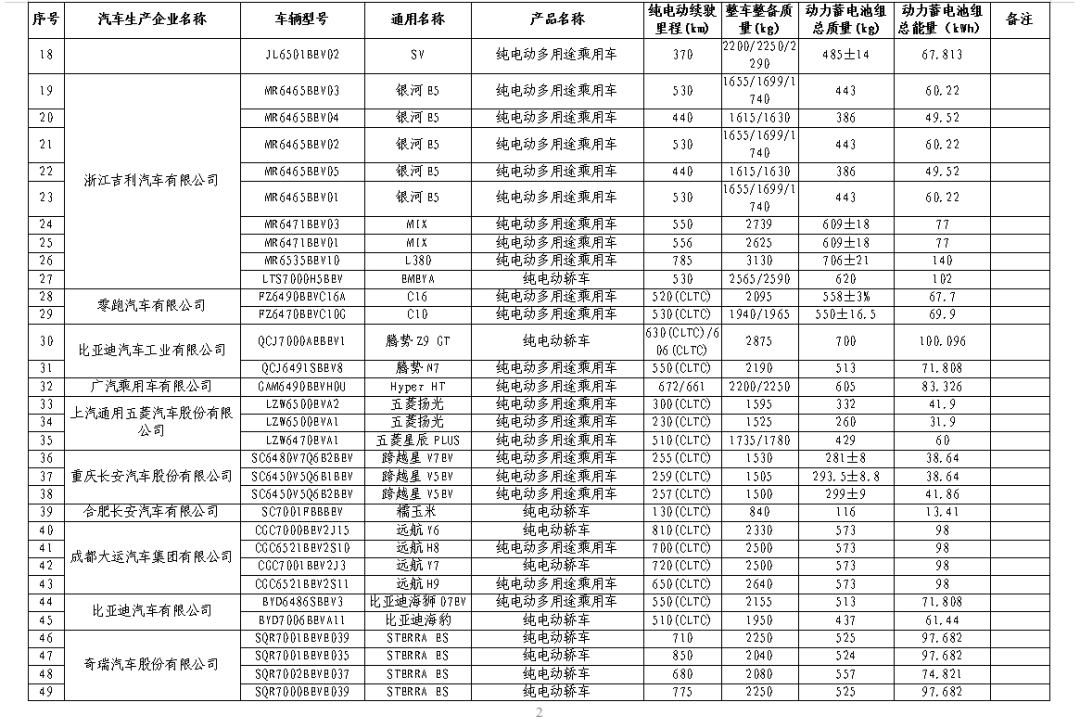 纯电动汽车-乘用车车型如下:
