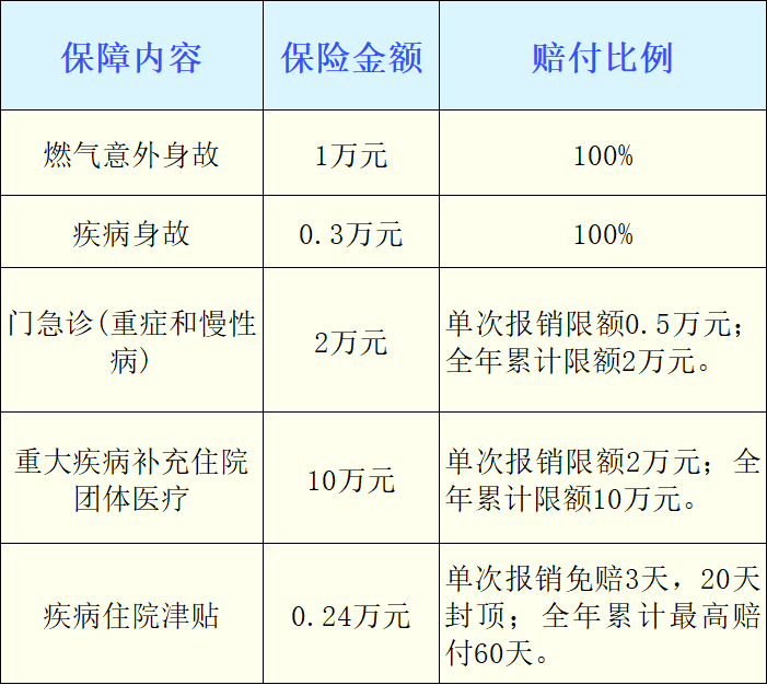 第一类和第二类对象:燃气意外身故责任;重大疾病补充住院团体医疗保险责任;门急诊责任;疾病身故责任;疾病住院津贴责任。