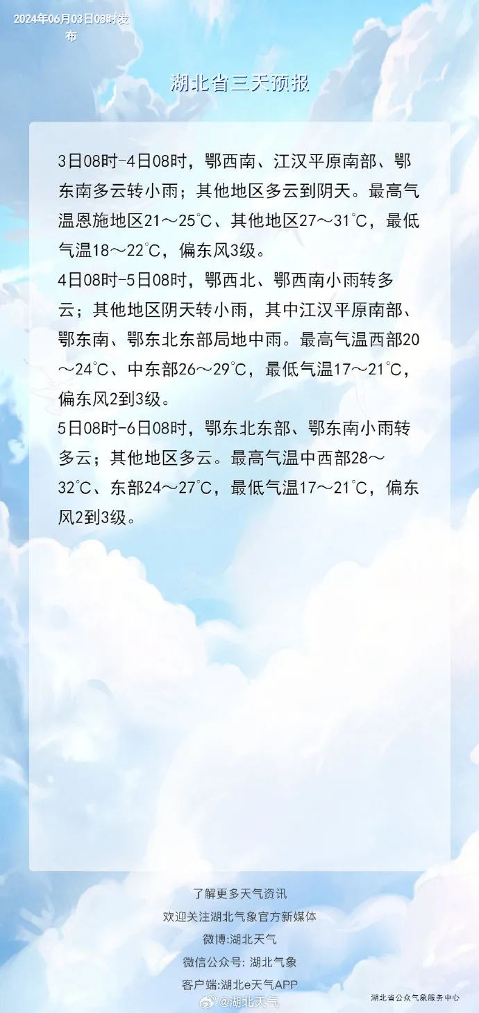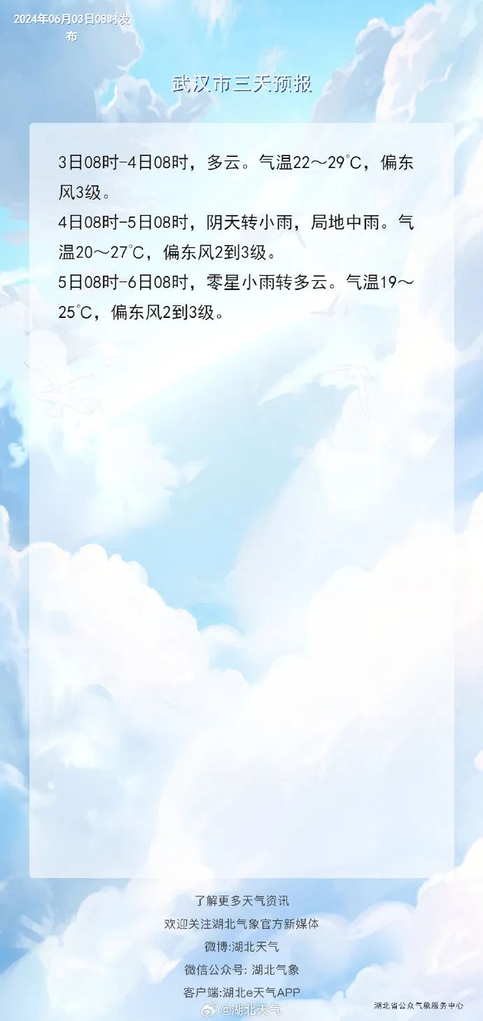另从武汉市气象局获悉,明天开始,武汉市又将迎来新一轮降水,气温也会有所下降。