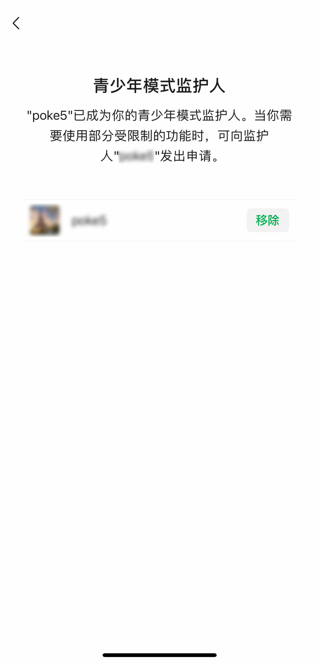 开启微信青少年模式之后,用户可绑定微信青少年模式的监护人,未成年人可向监护人发起特定公众号文章、小程序、链接临时访问申请,以及延长视频号使用时间的临时申请,监护人可远程通过个人微信账号进行同意授权。