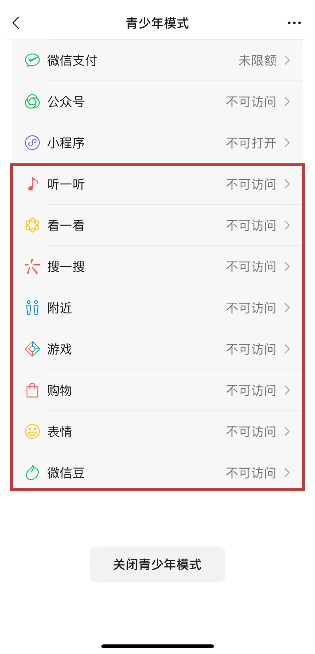 青少年模式下,还可以收获一个“纯享版”聊天工具微信。设置合理的消费限额,可以引导青少年健康消费,养成正确的金钱观和消费观。拒绝消费主义陷阱,从娃娃抓起。