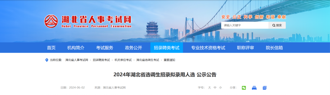 根据《2024年湖北省选调生招录公告》规定,综合考试、考察和体检等情况,经研究,拟录用周思涵等867人为2024年湖北省选调生(名单附后),现予以公示。公示时间为5个工作日(6月3日—6月7日)。如对公示名单有异议,可向拟录用人选报考市州党委组织部反映。