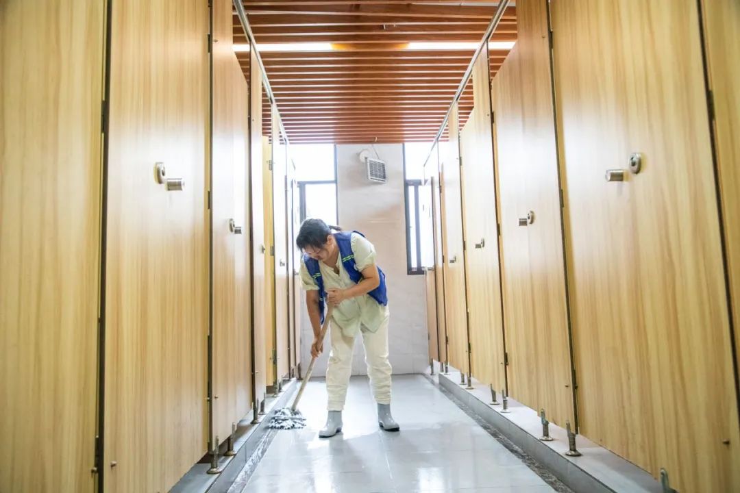 湖北省实验中学校门附近的公厕内,管理人员认真将公厕打扫的干干净净,保障考生和家长如厕需求。