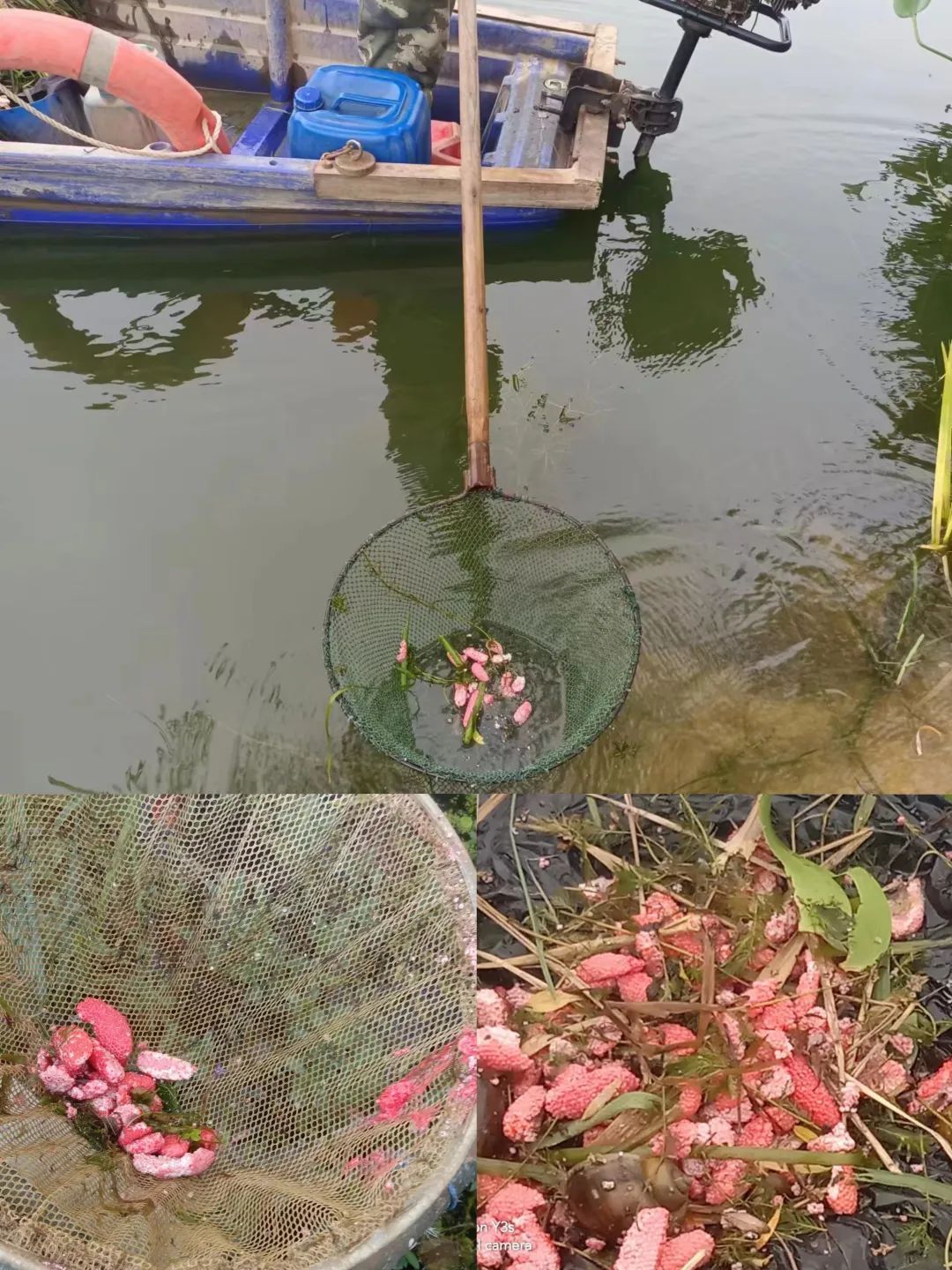 水务部门在对外沙湖的日常巡查和维护中也发现了这一反常现象。经过水务工作人员鉴别,这些粉色的“小花”实际上是福寿螺排出的卵块儿。所谓的“田螺”其实是福寿螺,虽形似田螺,却对生态有害。