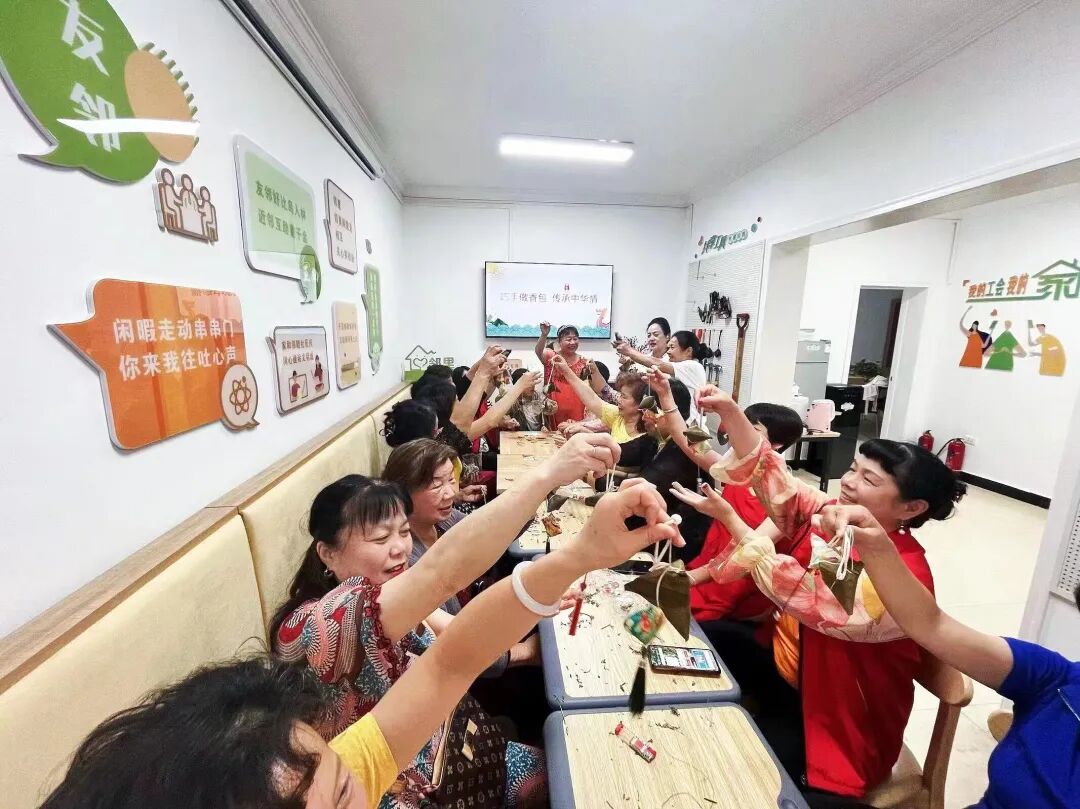 ▲工程营小区工会小组组织职工群众开展“做香包 迎端午”活动