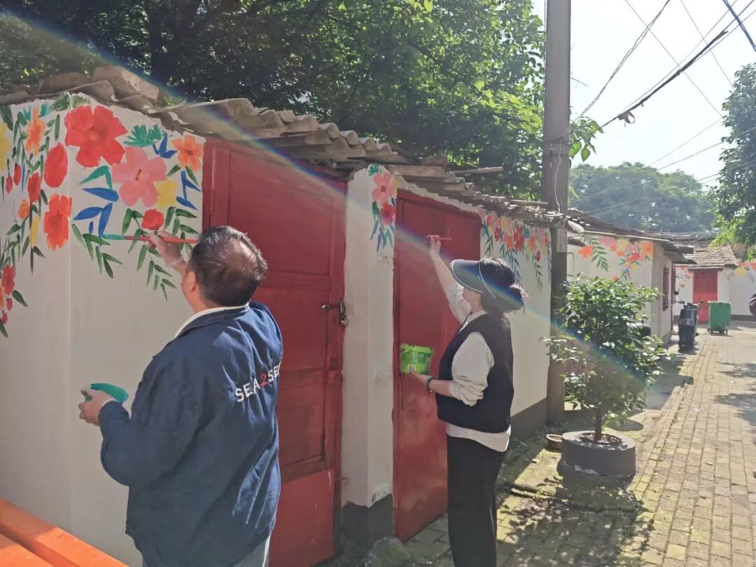 ▲工会小组组员参与“幸福微改造”项目墙面作画