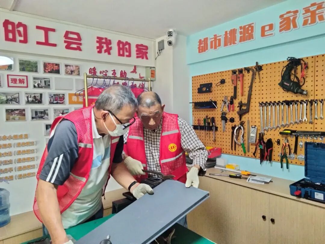 工具有了,谁来管理?怎么使用?工会小组公开征集维修达人、能工巧匠,很快退休职工踊跃报名,有人懂家电维修,有人懂机械常识,有人以前做钳工,就这样,小区暖邻维修互助队成立了。
