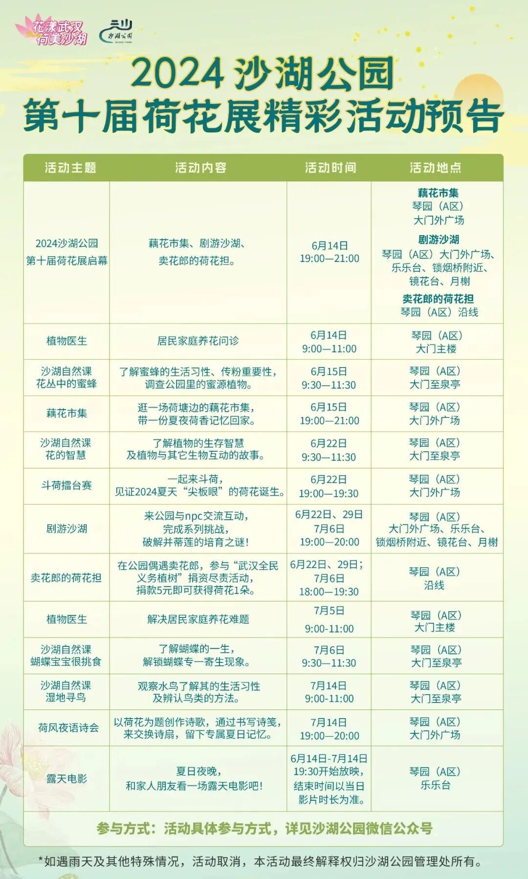 在活动安排上,本届荷花展保留了经典的“斗荷”活动,还将在傍晚及夜间开展剧游沙湖、藕花市集、夏夜电影、交换诗歌等特色活动。