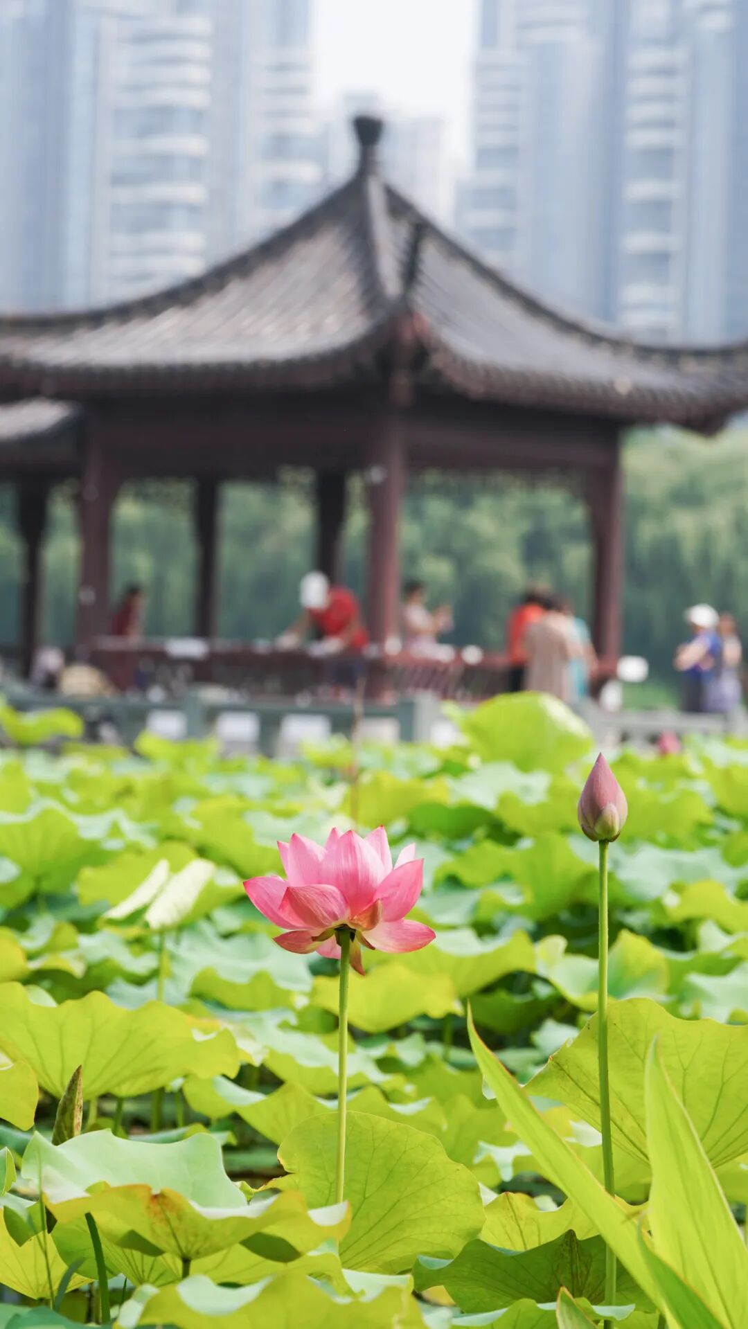 一园秀色半园湖,芙蕖摇曳风荷舒,在中心城区,这里是最负盛名的赏荷地。