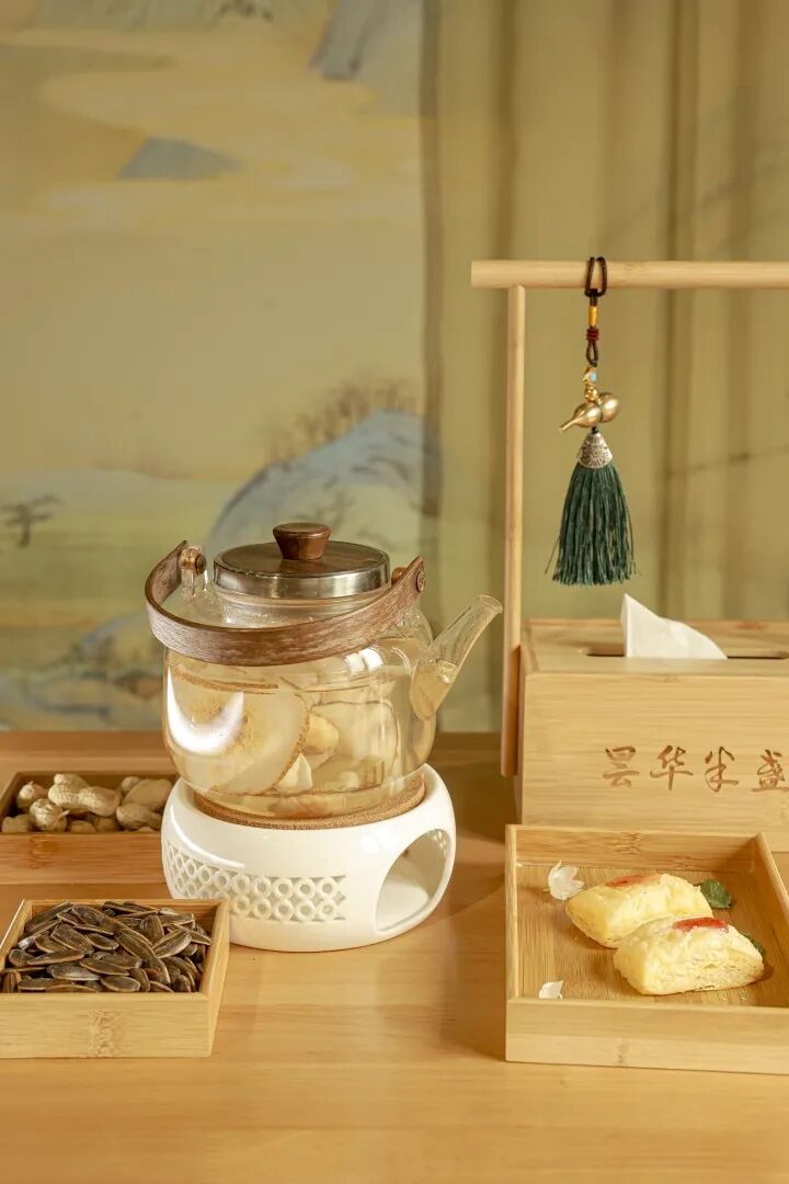 1、64元四人套餐:养生茶一壶、1碟瓜子、1碟花生、一口酥2个(原价84)