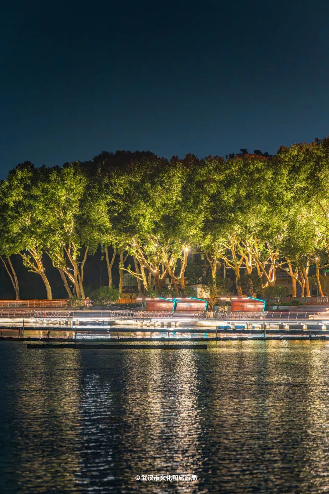 夜色里,背后亮起路灯的东湖,是一大片星空油画。