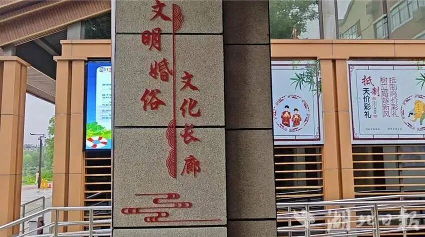 中华路街道都府堤社区党委书记蔡威介绍,社区充分用好红色资源,搭建网红打卡点、制作婚俗改革宣传牌,融入夫妻和睦、敬老孝亲等元素,引导新人树立“风雨同舟、互敬互爱”婚姻理念。