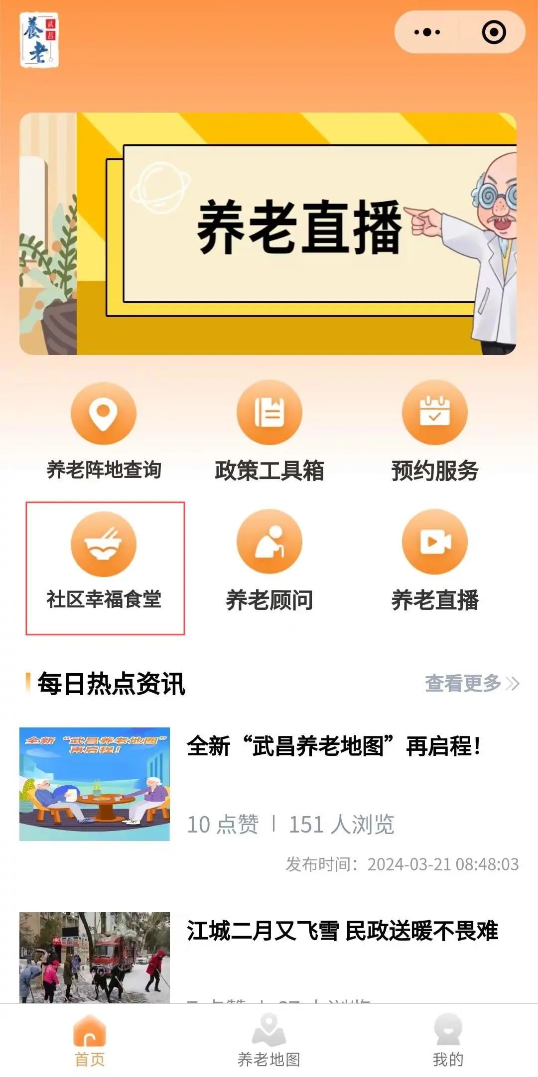 更多社区幸福食堂信息还可以登入“武昌养老地图”小程序进行搜索了解。